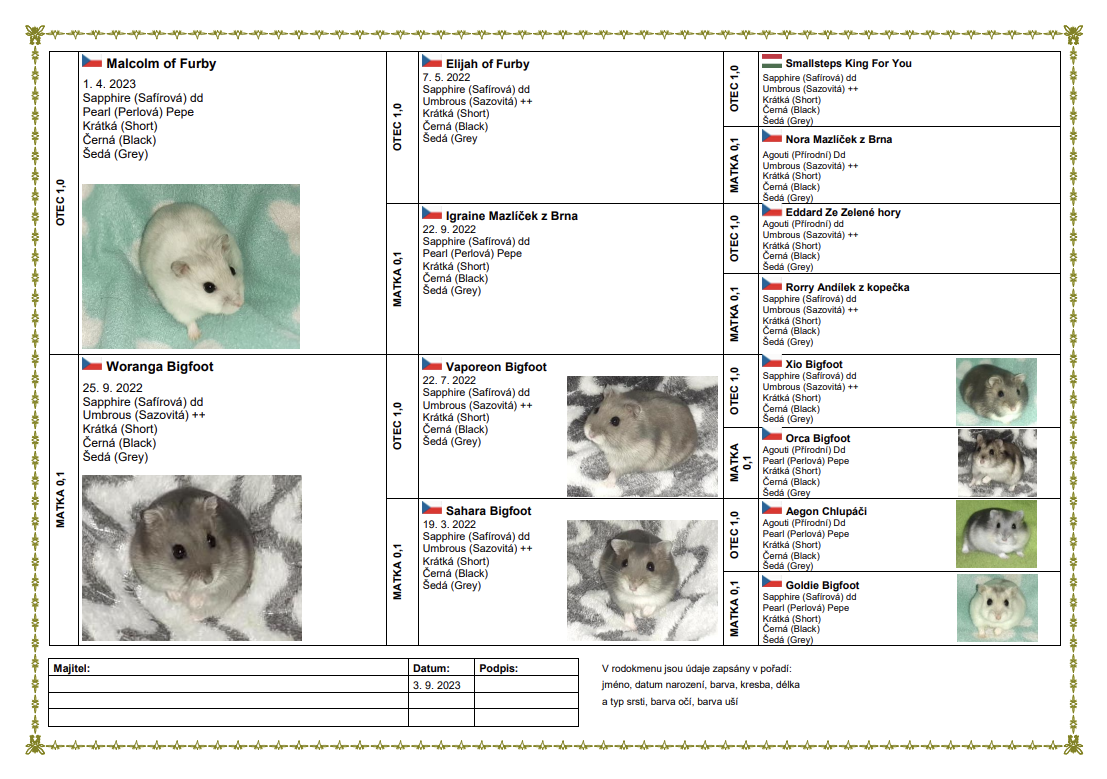 Koeficient příbuzenské plemenitby: 0,4 % (počítáno do 3. - 6. generace)