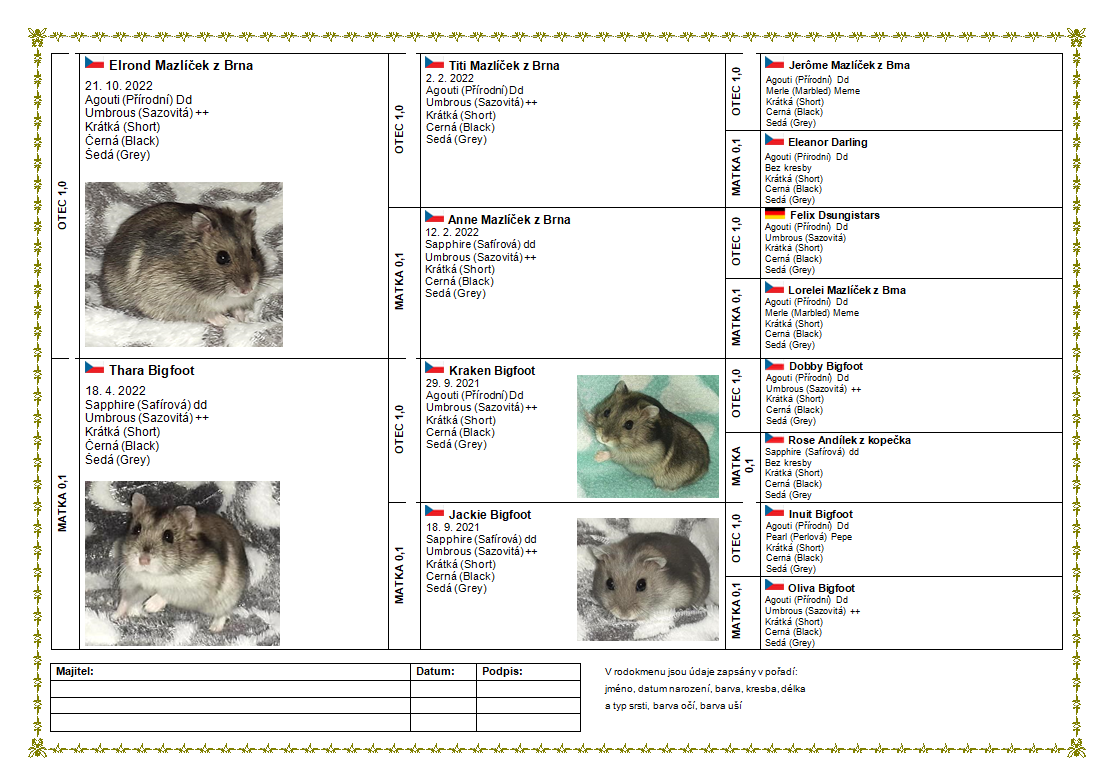 Koeficient příbuzenské plemenitby: 0,006 % (počítáno do 5. - 7. generace)