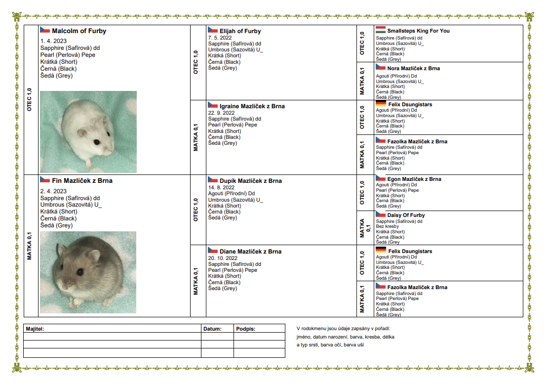 Koeficient příbuzenské plemenitby: 6,31 % (počítáno do 5. - 6. generace)